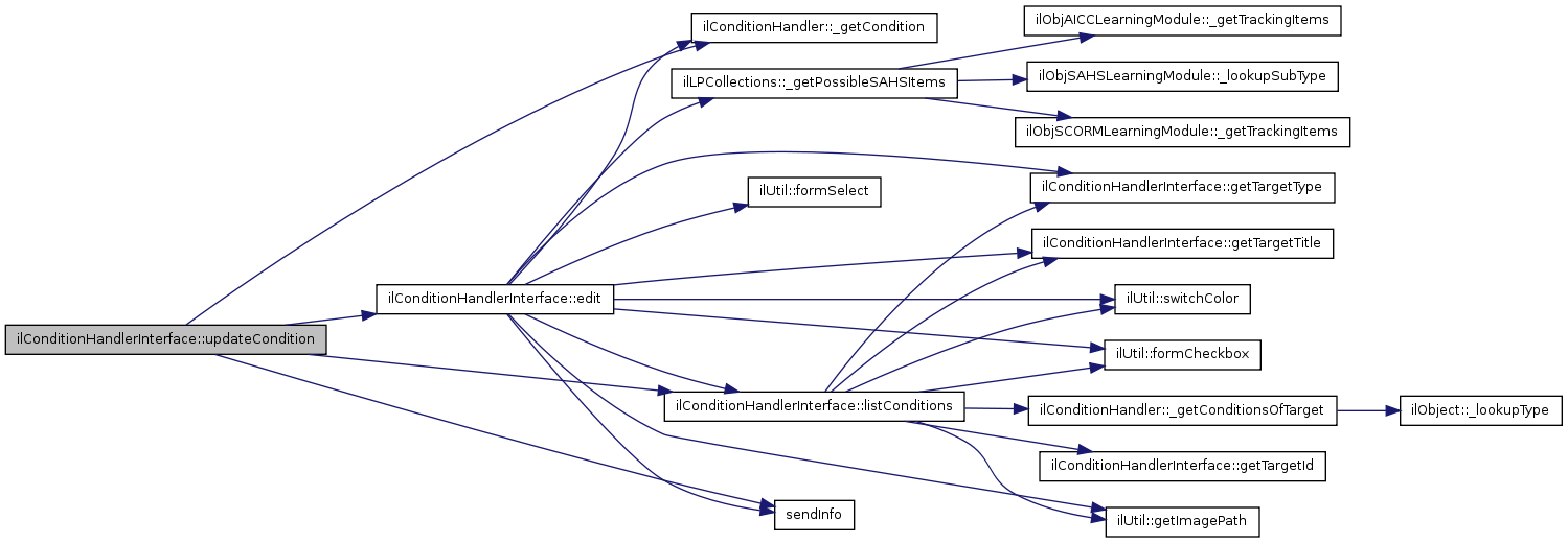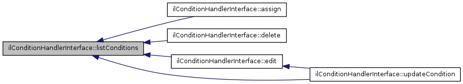Here is the caller graph for this function:| ilConditionHandlerInterface::updateCondition | ( | ) |