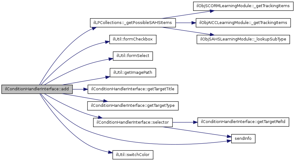 Here is the call graph for this function:| ilConditionHandlerInterface::add | ( | ) |