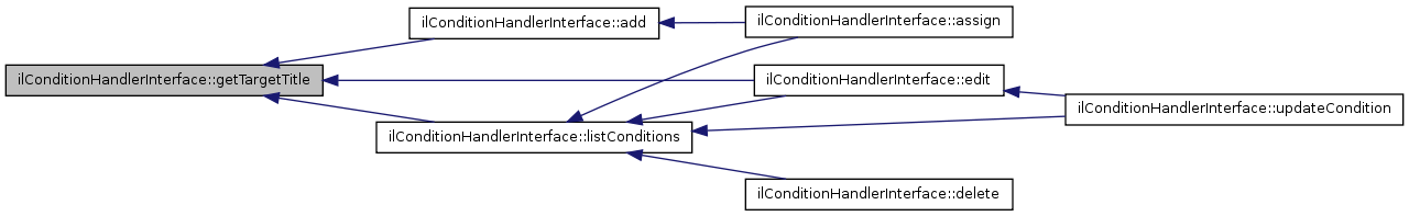 Here is the caller graph for this function:| ilConditionHandlerInterface::setTargetTitle | ( | $ | a_target_title | ) |