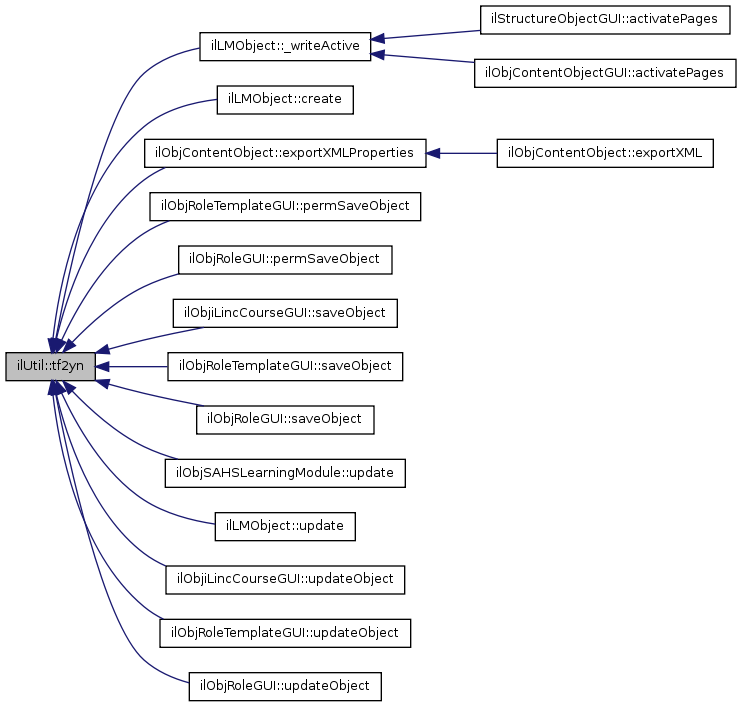 Here is the caller graph for this function:| ilUtil::yn2tf | ( | $ | a_yn | ) |