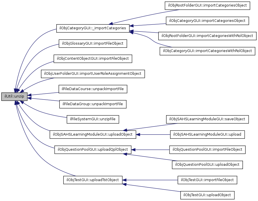 Referenced by ilObjCategoryGUI::_importCategories(), ilObjGlossaryGUI::importFileObject(), ilObjContentObjectGUI::importFileObject(), ilObjUserFolderGUI::importUserRoleAssignmentObject(), ilFileDataCourse::unpackImportFile(), ilFileDataGroup::unpackImportFile(), ilFileSystemGUI::unzipFile(), ilObjSAHSLearningModuleGUI::uploadObject(), ilObjQuestionPoolGUI::uploadQplObject(), and ilObjTestGUI::uploadTstObject().
