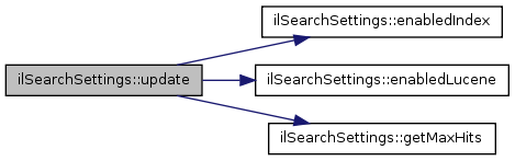 Here is the caller graph for this function:| ilSearchSettings::update | ( | ) |