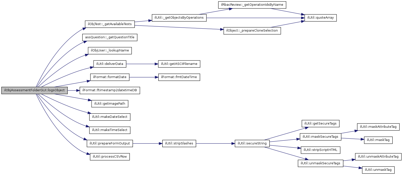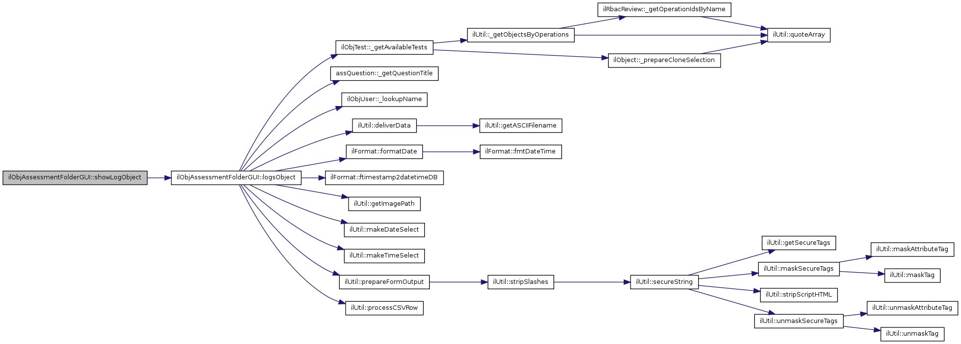 Here is the call graph for this function:| ilObjAssessmentFolderGUI::showLogObject | ( | ) |
