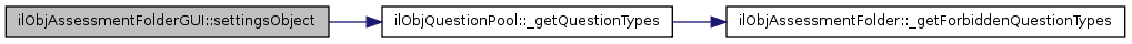Here is the call graph for this function:| ilObjAssessmentFolderGUI::settingsObject | ( | ) |