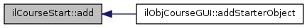 Here is the caller graph for this function:| ilCourseStart::add | ( | $ | a_item_ref_id | ) |