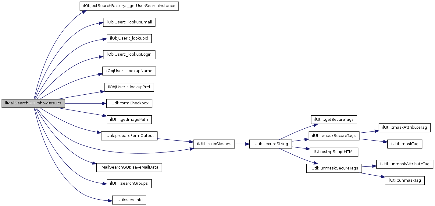 Here is the call graph for this function:| ilMailSearchGUI::showResults | ( | ) |