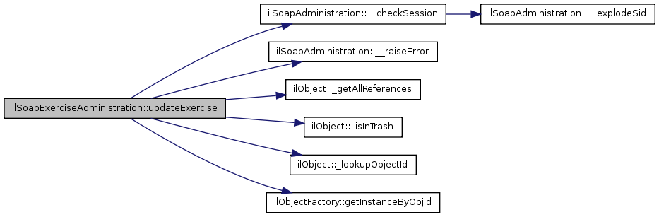 Here is the call graph for this function:| ilSoapExerciseAdministration::updateExercise | ( | $ | sid, | |