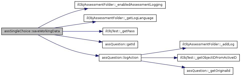 Here is the call graph for this function:| assSingleChoice::saveWorkingData | ( | $ | active_id, | |