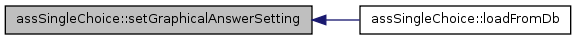 Here is the call graph for this function:| assSingleChoice::setGraphicalAnswerSetting | ( | $ | a_setting = 0 |