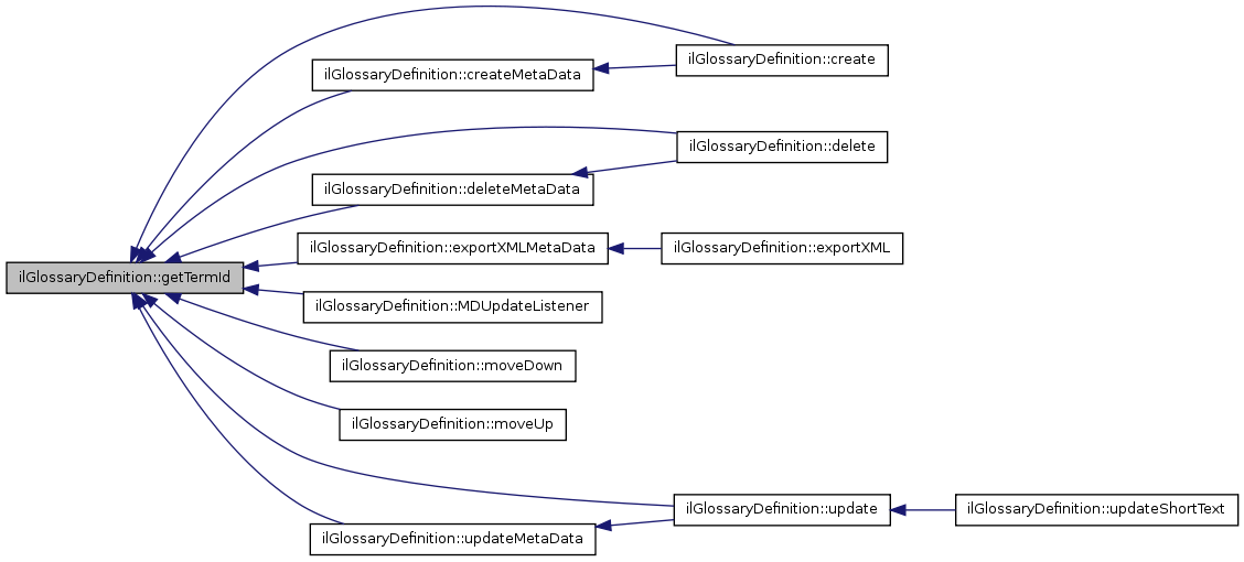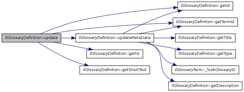 Here is the caller graph for this function:| ilGlossaryDefinition::updateMetaData | ( | ) |
