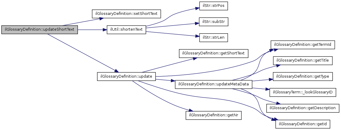 Here is the caller graph for this function:| ilGlossaryDefinition::updateShortText | ( | ) |