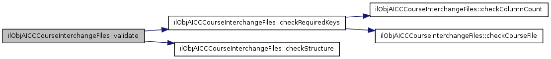 Here is the call graph for this function:| ilObjAICCCourseInterchangeFiles::validate | ( | ) |