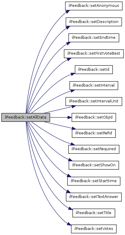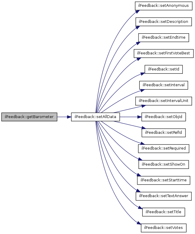 Here is the call graph for this function:| ilFeedback::setAllData | ( | $ | a_barometer | ) |