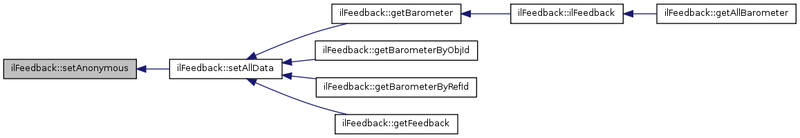Here is the caller graph for this function:| ilFeedback::setAnonymous | ( | $ | a_anonymous | ) |