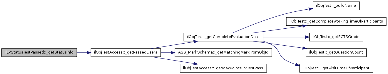 Here is the call graph for this function:| ilLPStatusTestPassed::_getStatusInfo | ( | $ | a_obj_id | ) |