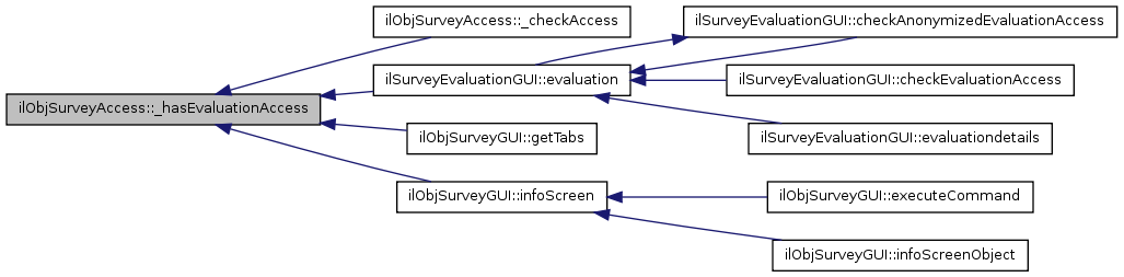 Here is the caller graph for this function:| ilObjSurveyAccess::_hasEvaluationAccess | ( | $ | a_obj_id, | |