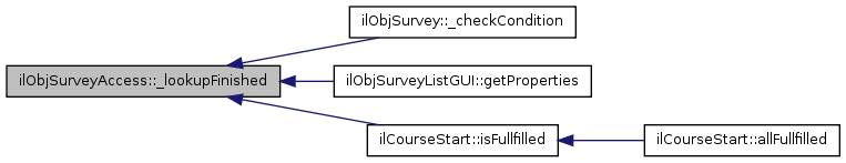 Here is the caller graph for this function:| ilObjSurveyAccess::_lookupFinished | ( | $ | a_obj_id, | |