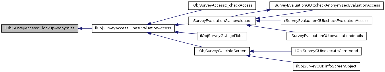 Here is the caller graph for this function:| ilObjSurveyAccess::_lookupAnonymize | ( | $ | a_obj_id | ) |