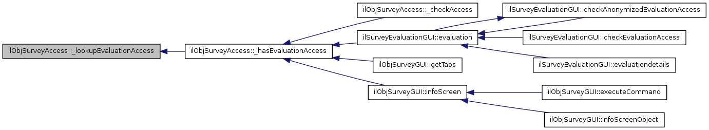 Here is the caller graph for this function:| ilObjSurveyAccess::_lookupEvaluationAccess | ( | $ | a_obj_id | ) |