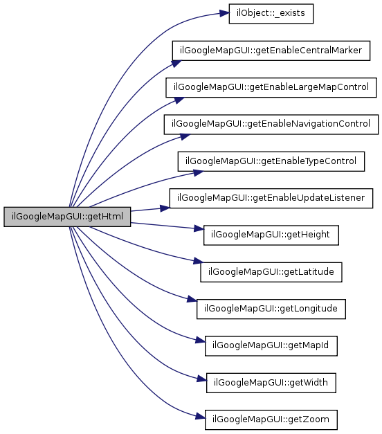 Here is the caller graph for this function:| ilGoogleMapGUI::getHtml | ( | ) |