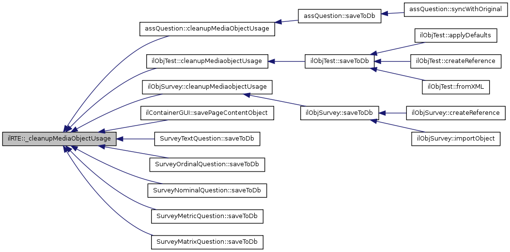 Referenced by assQuestion::cleanupMediaObjectUsage(), ilObjTest::cleanupMediaobjectUsage(), ilObjSurvey::cleanupMediaobjectUsage(), ilContainerGUI::savePageContentObject(), SurveyTextQuestion::saveToDb(), SurveyOrdinalQuestion::saveToDb(), SurveyNominalQuestion::saveToDb(), SurveyMetricQuestion::saveToDb(), and SurveyMatrixQuestion::saveToDb().