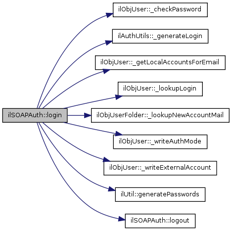 Here is the call graph for this function:| ilSOAPAuth::logout | ( | ) |