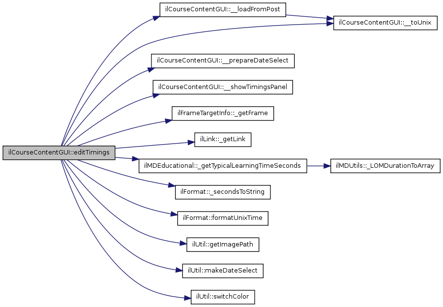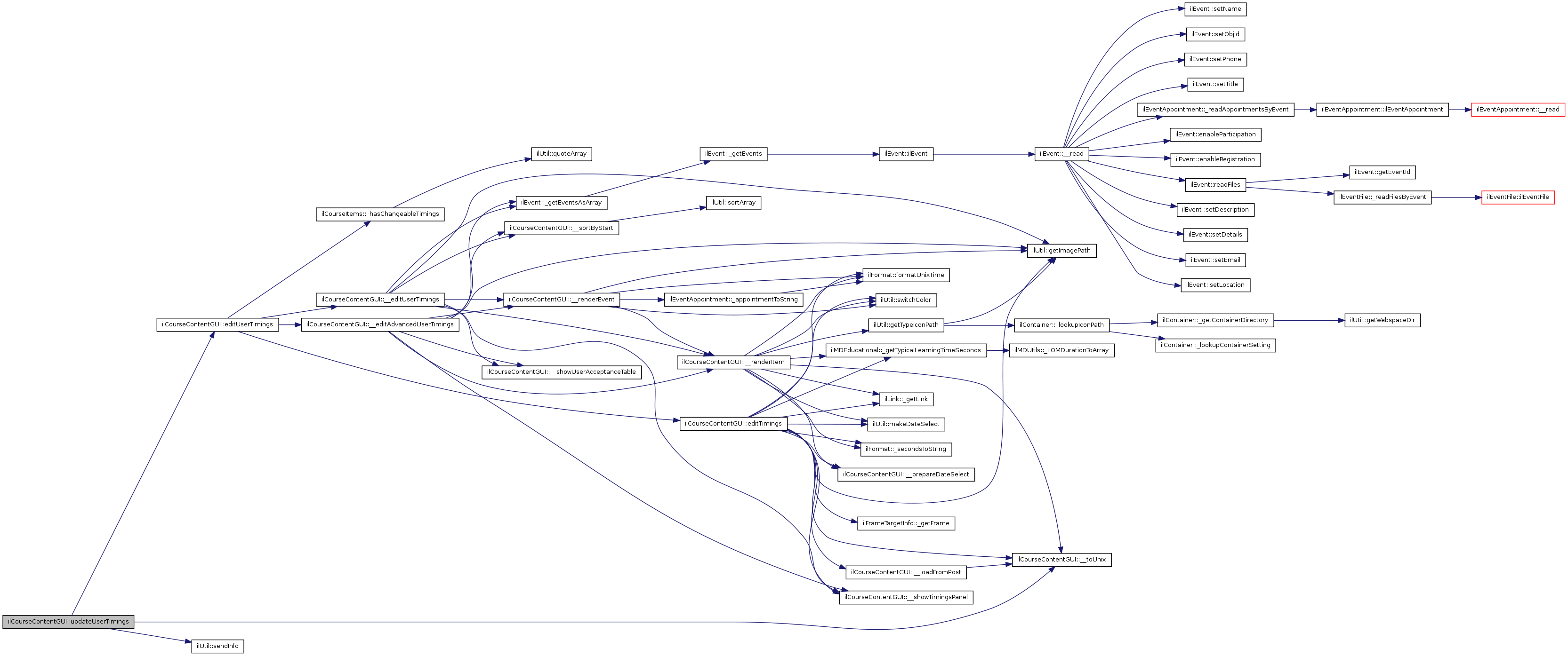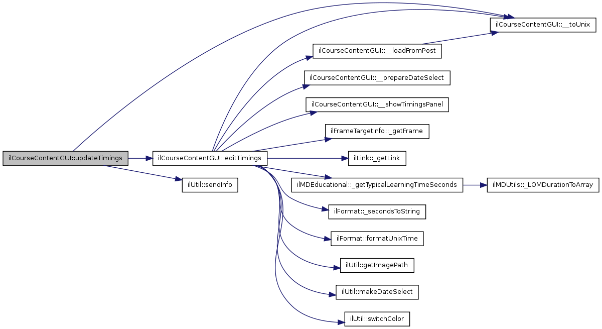 Here is the call graph for this function:| ilCourseContentGUI::updateTimings | ( | ) |