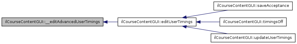 Here is the caller graph for this function:| ilCourseContentGUI::__editAdvancedUserTimings | ( | ) |