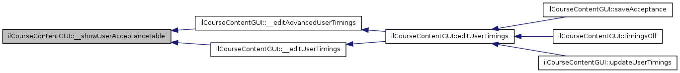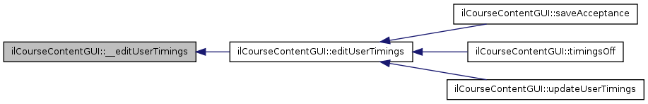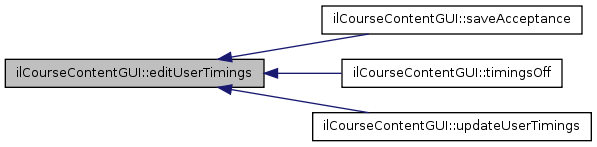 Here is the caller graph for this function:| ilCourseContentGUI::__editUserTimings | ( | ) |