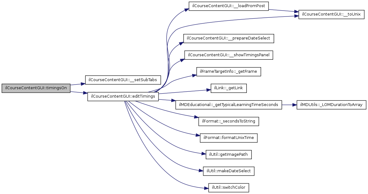 Here is the call graph for this function:| ilCourseContentGUI::timingsOn | ( | ) |