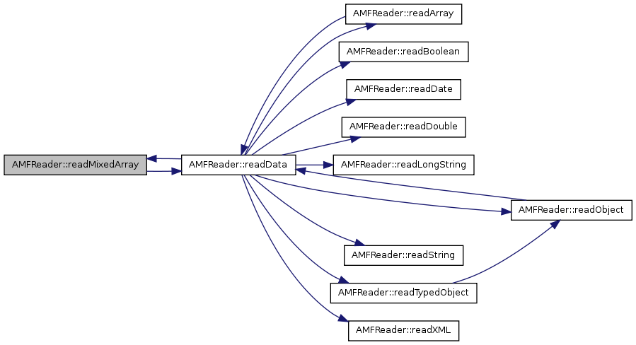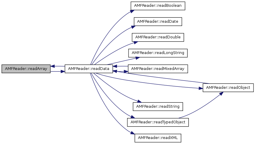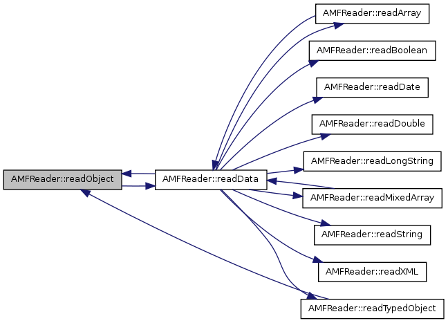 References readArray(), readBoolean(), readDate(), readDouble(), readLongString(), readMixedArray(), readObject(), readString(), readTypedObject(), and readXML().