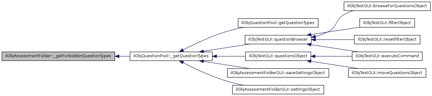Here is the caller graph for this function:| ilObjAssessmentFolder::_getForbiddenQuestionTypes | ( | ) |