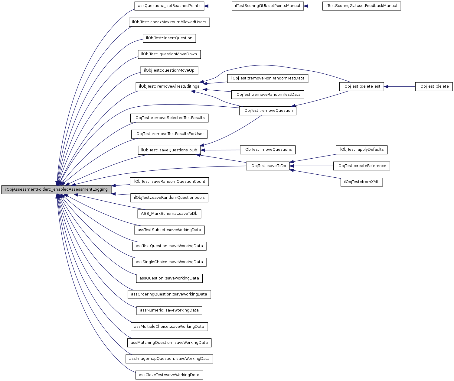 Here is the caller graph for this function:| ilObjAssessmentFolder::_enableAssessmentLogging | ( | $ | a_enable | ) |