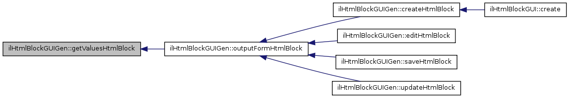 Here is the caller graph for this function:| ilHtmlBlockGUIGen::getValuesHtmlBlock | ( | ) |