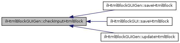 Here is the caller graph for this function:| ilHtmlBlockGUIGen::checkInputHtmlBlock | ( | ) |