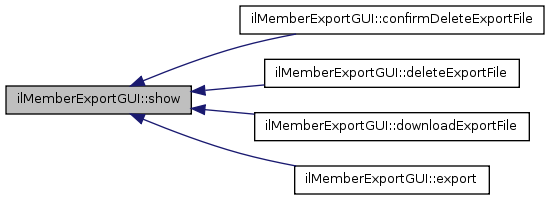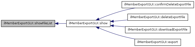 Here is the caller graph for this function:| ilMemberExportGUI::showFileList | ( | ) |