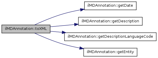 Here is the call graph for this function:| ilMDAnnotation::toXML | ( | &$ | writer | ) |