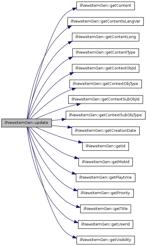 Here is the caller graph for this function:| ilNewsItemGen::update | ( | ) |