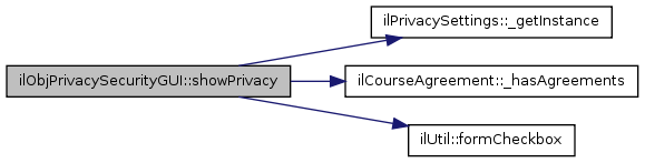 Here is the call graph for this function:| ilObjPrivacySecurityGUI::showPrivacy | ( | ) |