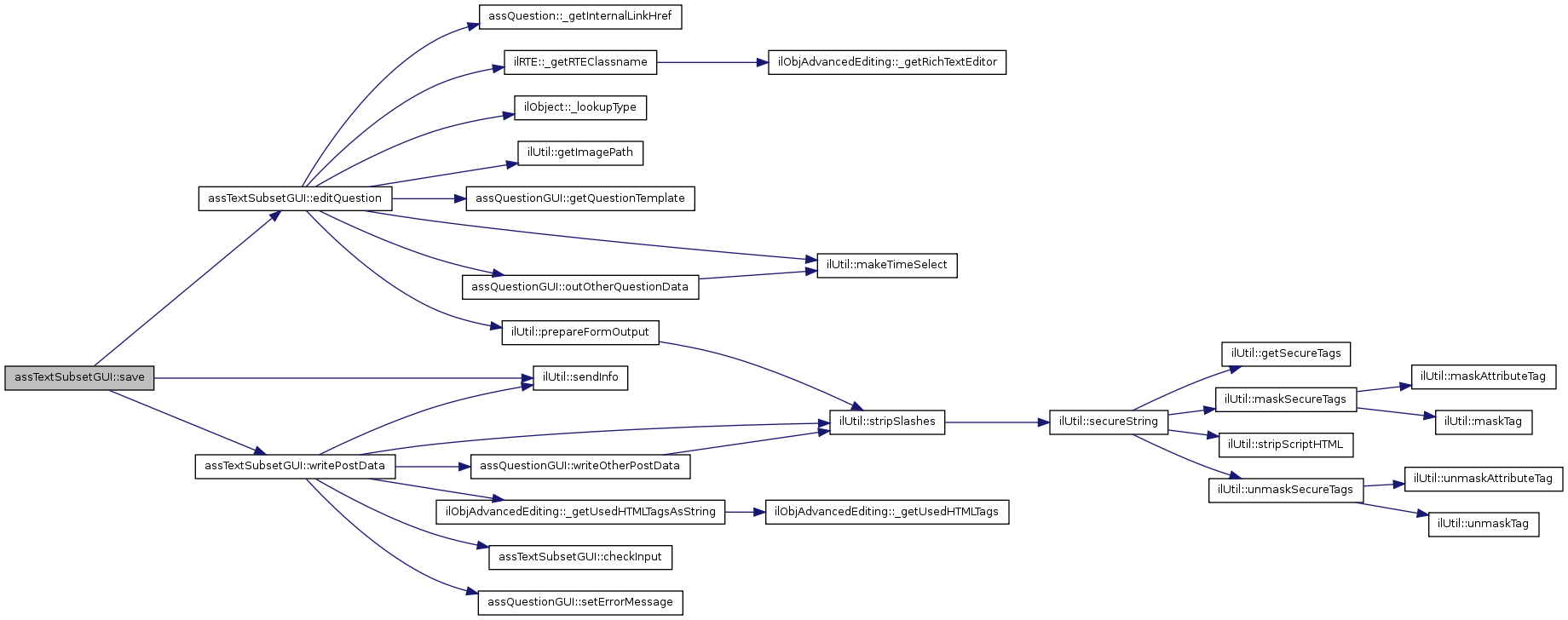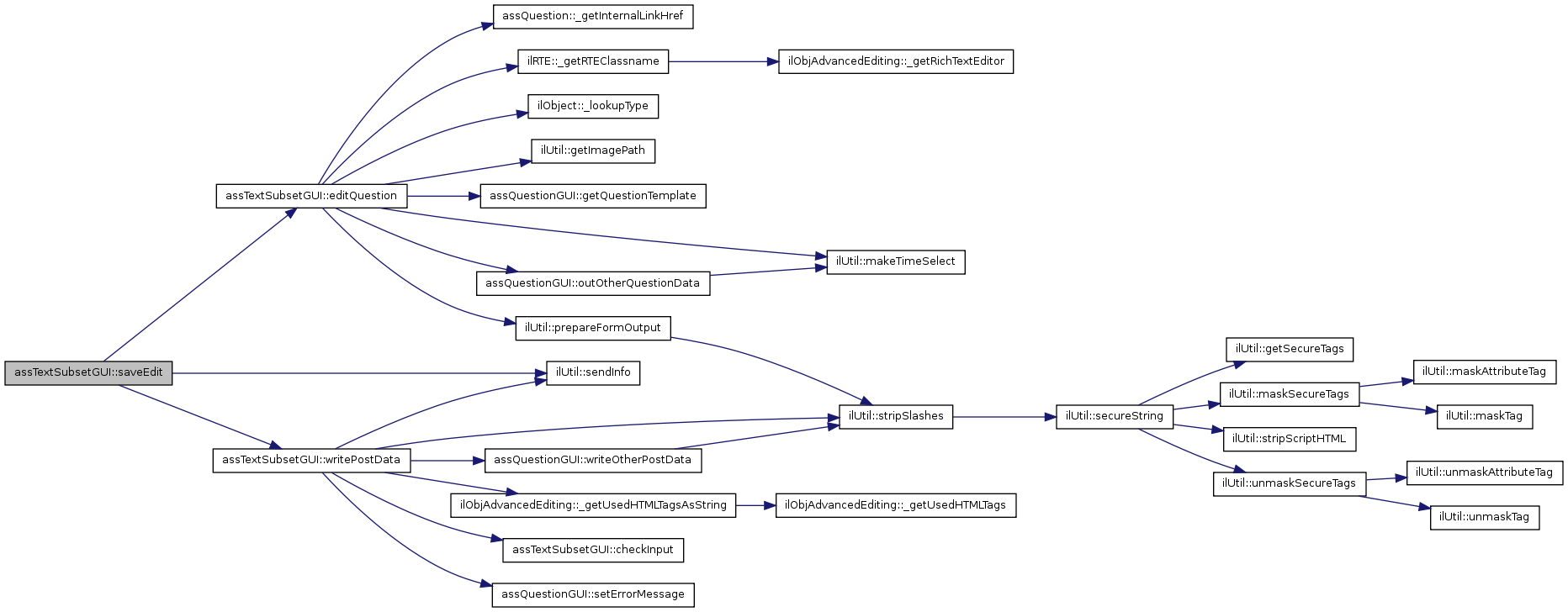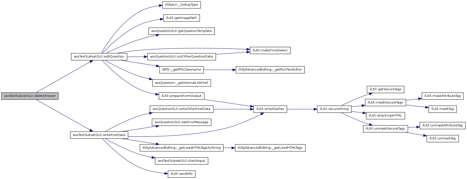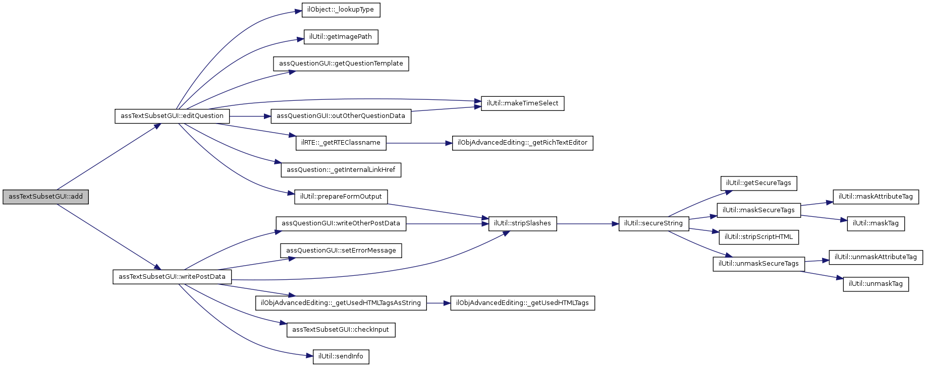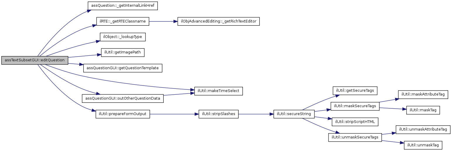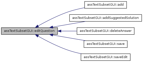 Here is the call graph for this function:| assTextSubsetGUI::editQuestion | ( | ) |