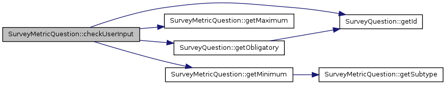 Here is the call graph for this function:| SurveyMetricQuestion::checkUserInput | ( | $ | post_data, | |