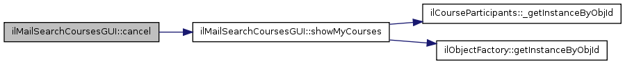 Here is the call graph for this function:| ilMailSearchCoursesGUI::cancel | ( | ) |