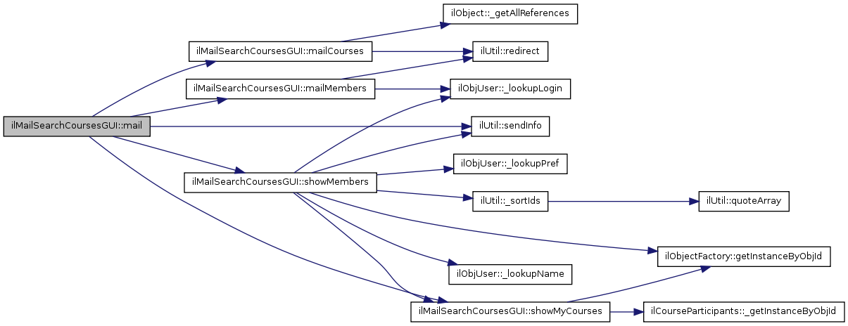 Here is the call graph for this function:| ilMailSearchCoursesGUI::mailCourses | ( | ) |