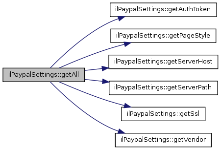 Here is the caller graph for this function:| ilPaypalSettings::getAll | ( | ) |