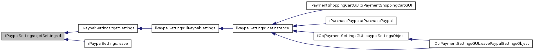 Here is the caller graph for this function:| ilPaypalSettings::getSettingsId | ( | ) |