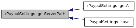 Here is the caller graph for this function:| ilPaypalSettings::getServerPath | ( | ) |
