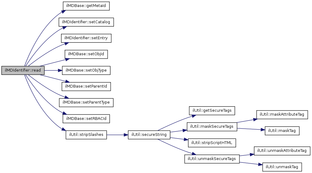 Here is the call graph for this function:| ilMDIdentifier::read | ( | ) |
