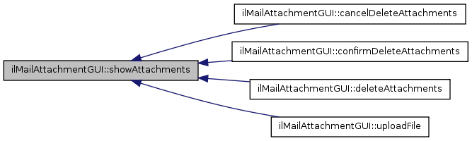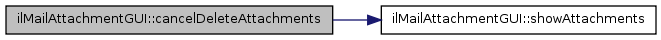 Here is the call graph for this function:| ilMailAttachmentGUI::deleteAttachments | ( | ) |