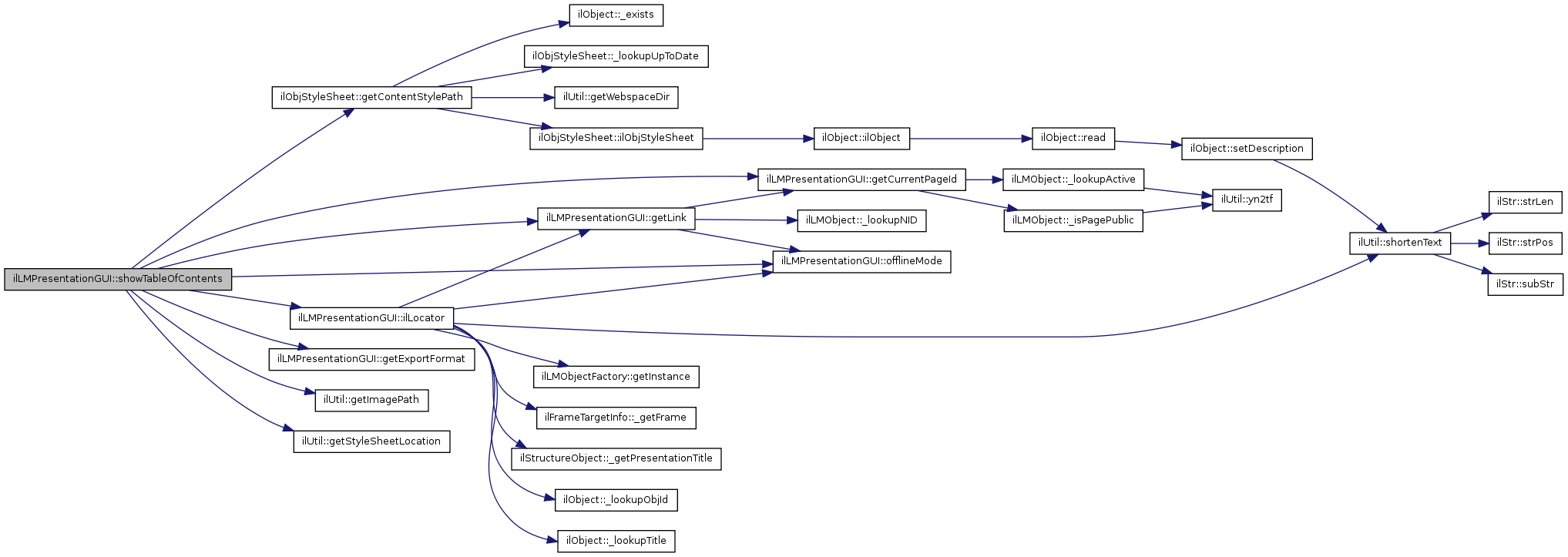 Here is the call graph for this function:| ilLMPresentationGUI::showTableOfContents | ( | ) |