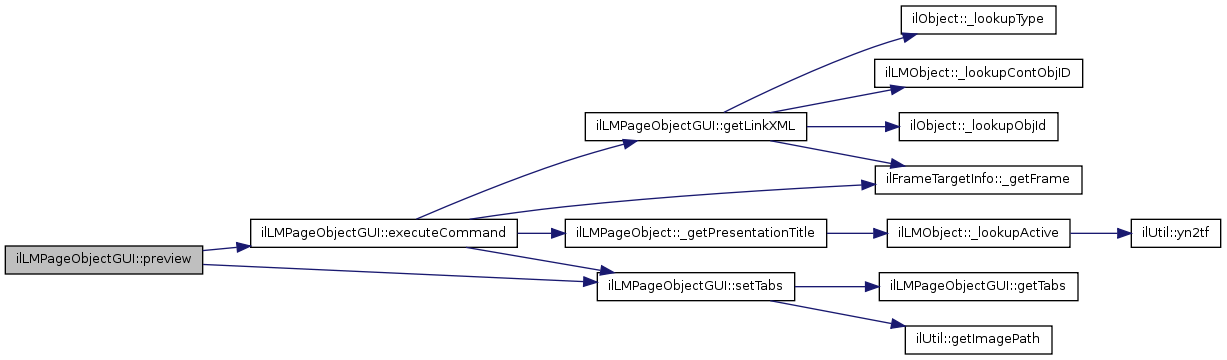 Here is the call graph for this function:| ilLMPageObjectGUI::preview | ( | ) |